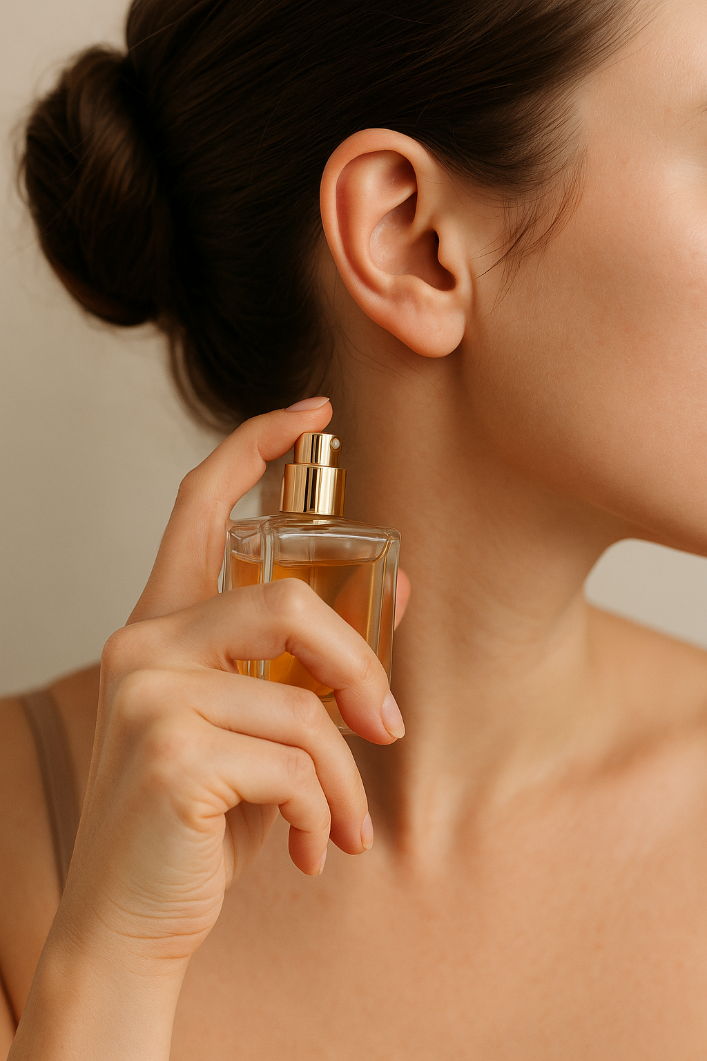 Nałóż perfumy za uszy – to jedno z najlepszych „ciepłych miejsc”. Skóra w tym miejscu emanuje ciepłem, co pomaga zapachowi rozwijać się stopniowo i delikatnie. To świetne miejsce, jeśli chcesz, aby zapach był wyczuwalny podczas przytulania lub bliskiego kontaktu.